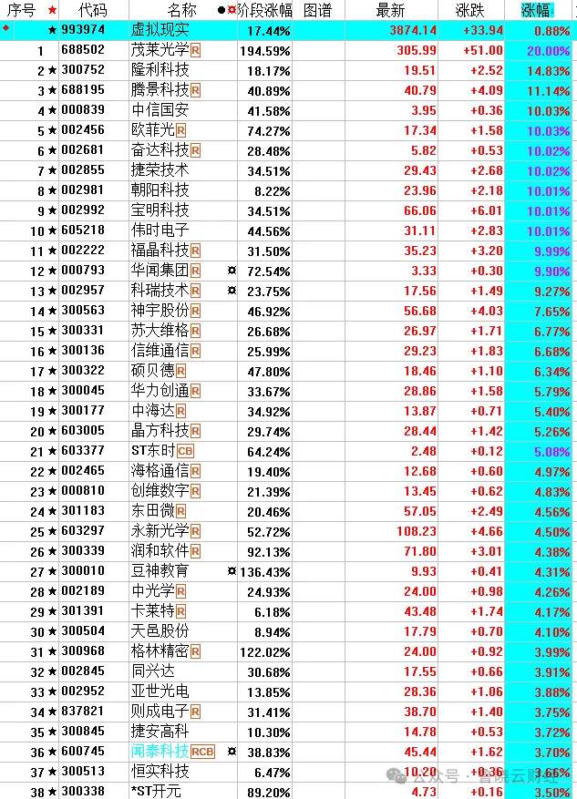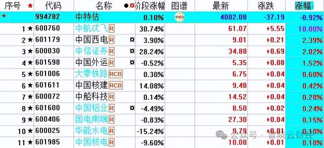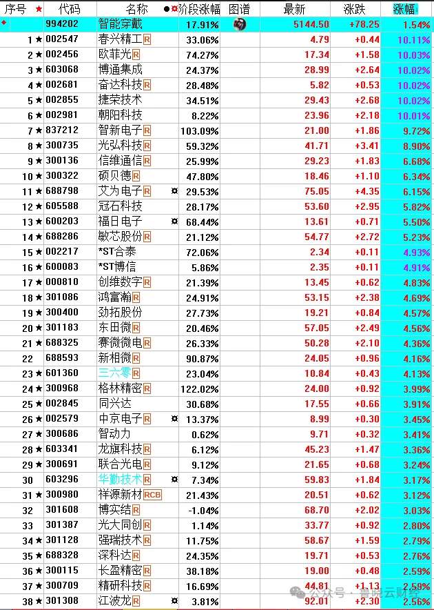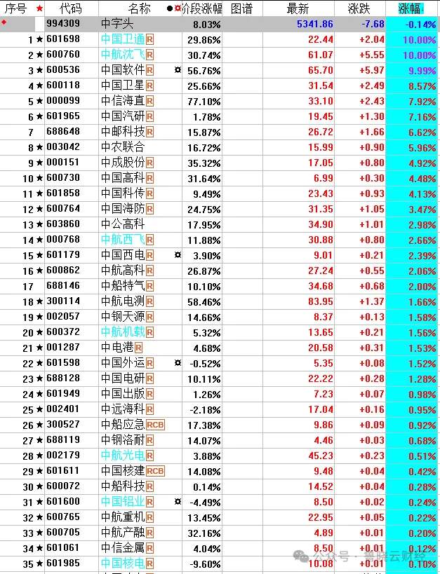 附表、周五强势而梅开四度的航天军工个股前38名一览表(含10月幅度至今,下同)