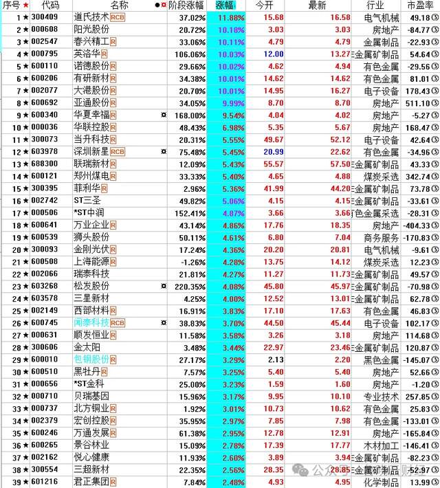 附表、货币松动假象强势之周五周期股强势前39名一览表:
