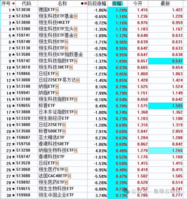 背景因素之6:海外市场ETF继续强势,附周五或10月至今的强势前30名一览表: