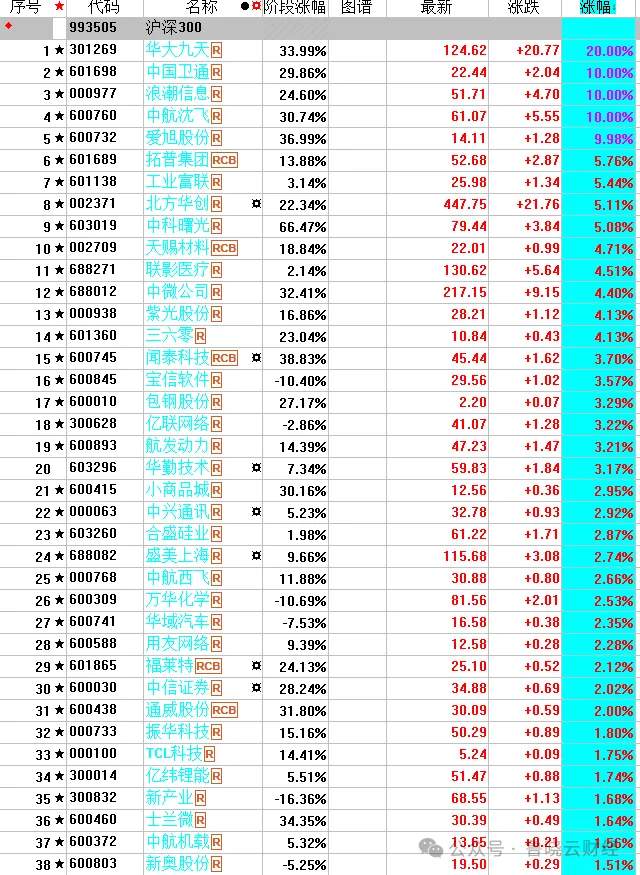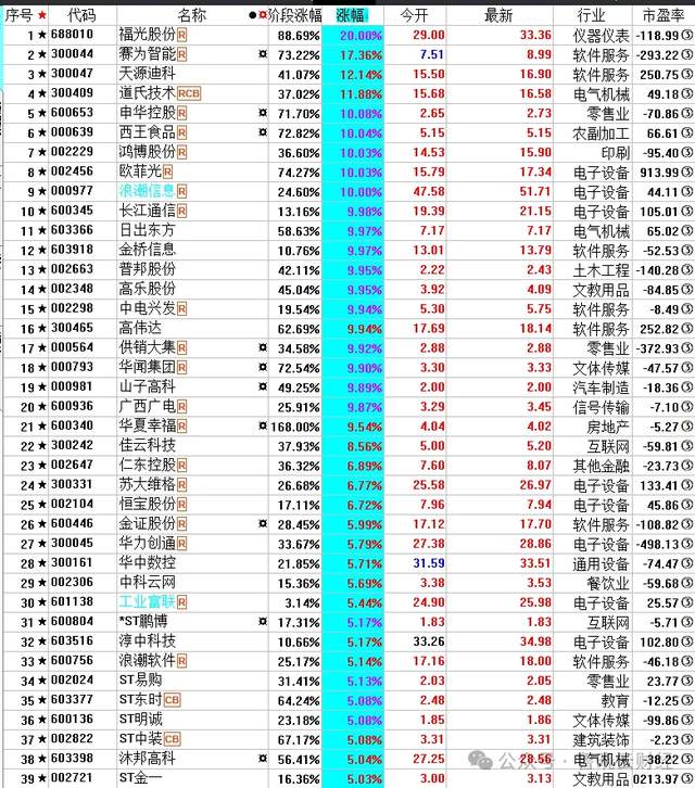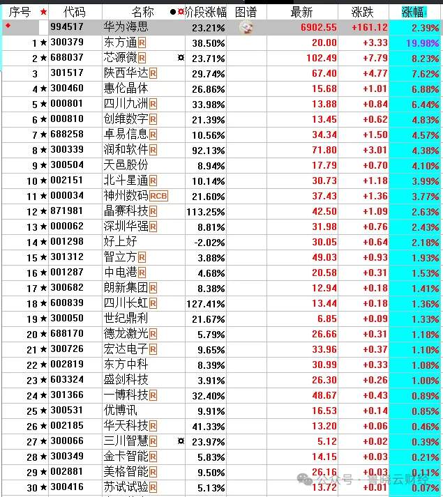 附表、周五华为海思强势个股正数前30名一览表(提前炒作,提前退潮):